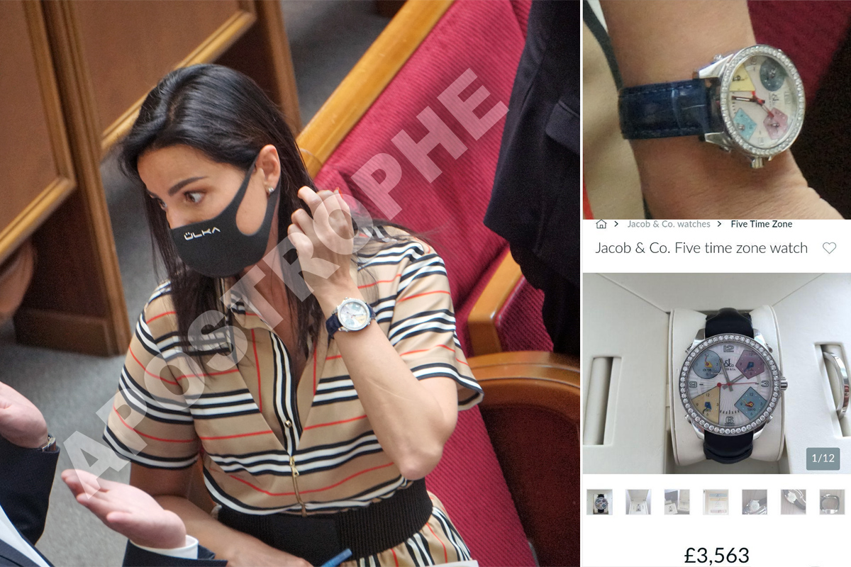 Во вторник, 15 сентября, народный депутат из президентской фракции "Слуга народа" Оксана Дмитриева пришла на работу в Верховную Раду с часами швейцарской марки Jacob & Co, передает FaceNews.ua.