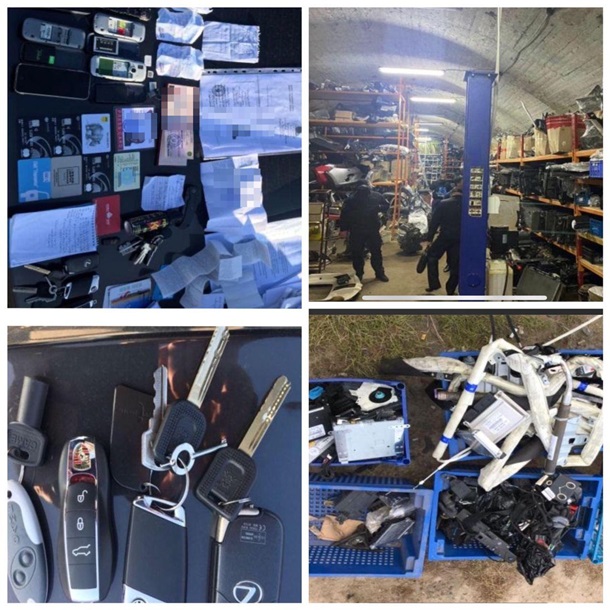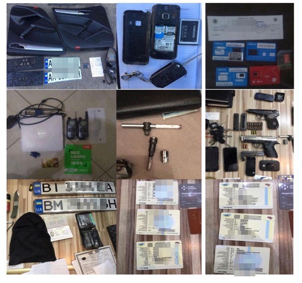 Обнаружена и изъята спецтехника для открытия и запуска мотора автомобилей, рации, пистолеты, патроны, десятки мобильных телефонов, свидетельства о регистрации авто, государственные номерные знаки, бортовые компьютеры и прочее.