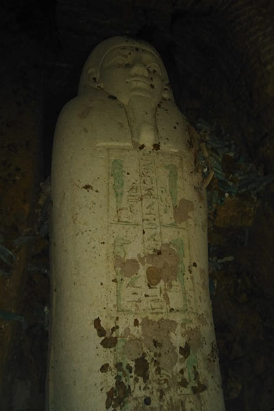На крышке саркофага, покрытой ритуальными изображениями и иероглифами, в частности имеются изображения четырех детей бога Гора. Рядом с ним было найдено несколько статуэток ушебти – скульптур, которые, по верованиям египтян, замещали умершего при работе на загробных полях Осириса. Ушебти также использовали для передачи в загробный мир различных заклинаний.