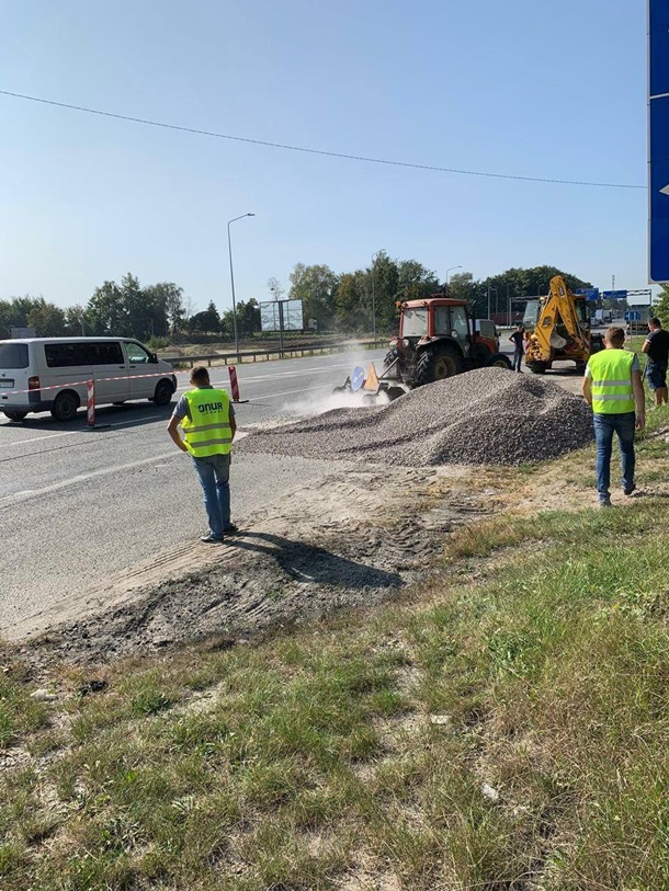 На Львовщине водитель высыпал щебень на трассу, чтобы избежать весового контроля (фото)