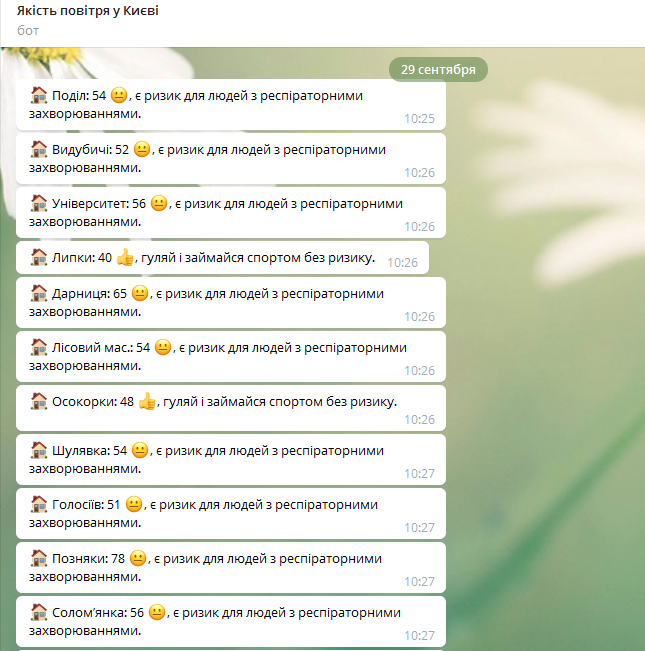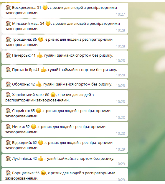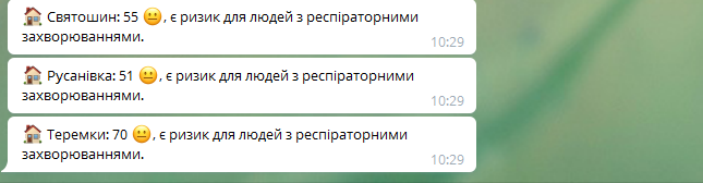 В остальных микрорайонах Киева есть риск для людей с респираторными заболеваниями.