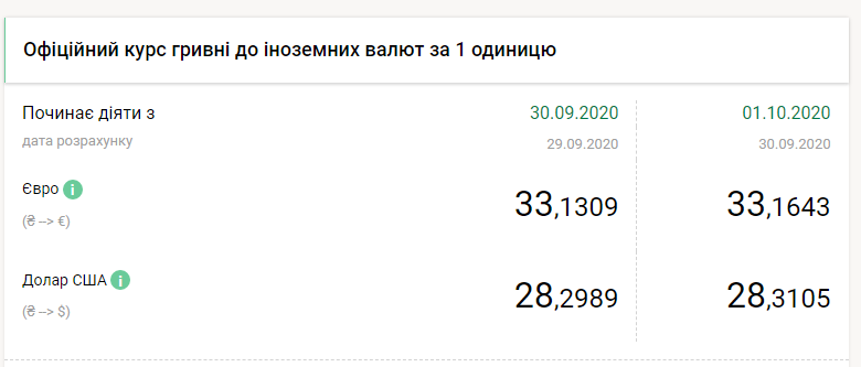 Курс валют на 1 октября: гривна подешевела к доллару и к евро