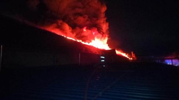 Как сообщает ГСЧС, иформация о возгорании была получена в 02:00 ночи. Огнем была охвачена крыша одноэтажного здания производственного цеха со складским помещением общей площадью 20 тысяч кв. м.