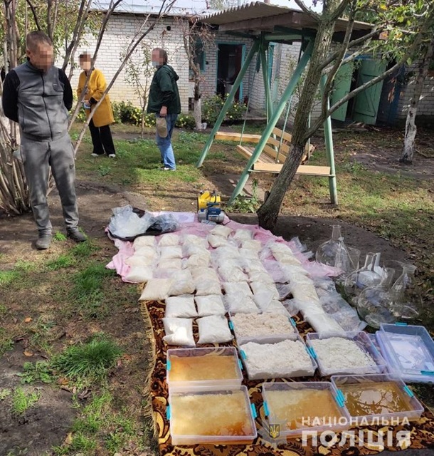 В ходе проведения девяти обысков на территории Киева и Киевской области обнаружена лаборатория по изготовлению психотропного вещества PVP, склады, а также колл-центры, которые обрабатывали заказы по продаже наркотиков.