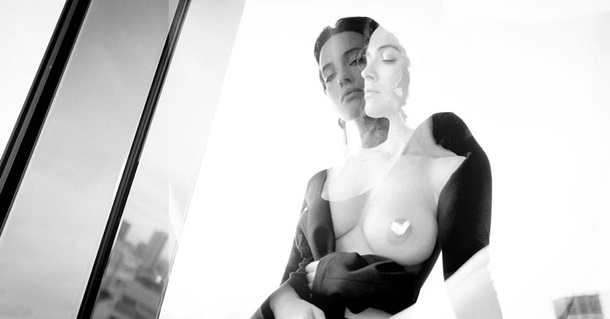 Обнаженная грудь артистки на фото слегка заретуширована.