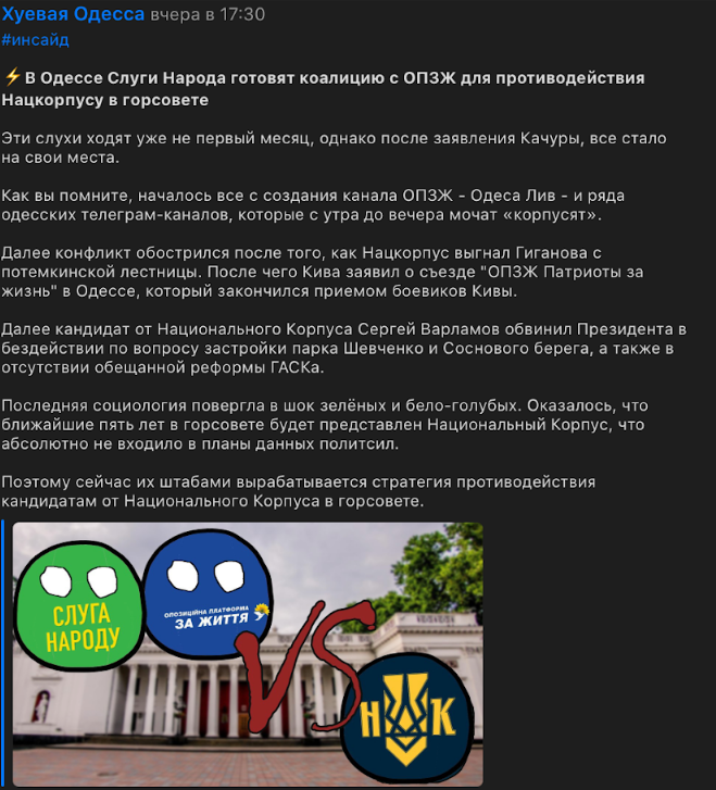 На фоне растущей поддержки одесского Нацкорпуса «слуги народа» готовятся создать коалицию с ОПЗЖ