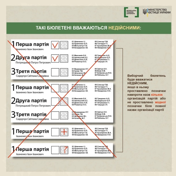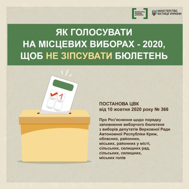 За несколько дней до местных выборов Минюст опубликовал инфографику, которая объясняет, как правильно заполнять обновленные бюллетени, передает FaceNews.ua.