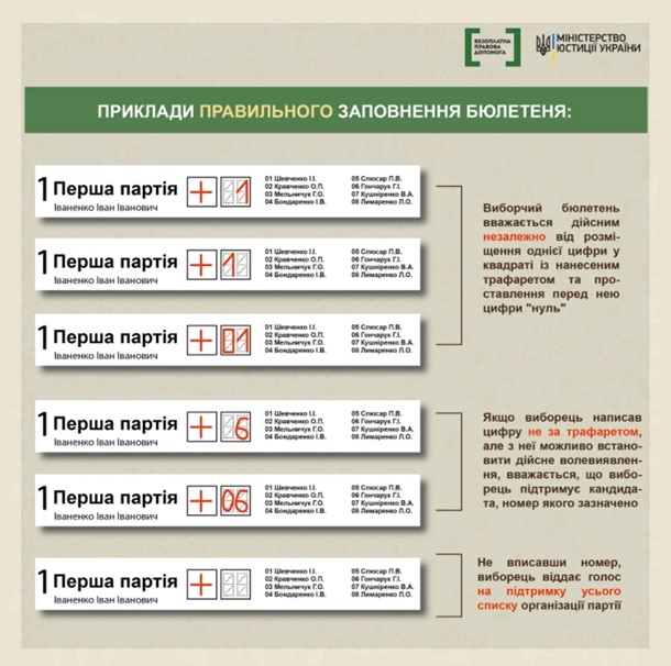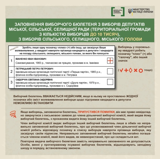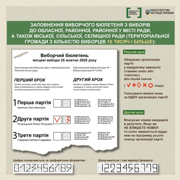 Местные выборы: Минюст показал, как заполнять бюллетени