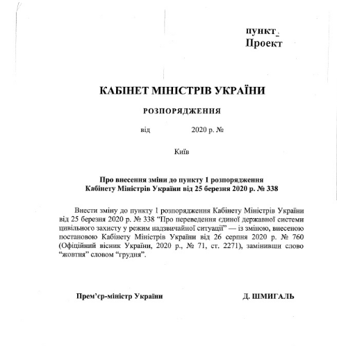 Как отмечается в пояснительной записке к проекту распоряжения, в связи с существенным ухудшением эпидемической ситуации, связанной с распространением в Украине COVID-19, постановлением Кабинет министров Украины 13 октября 2020 года срок действия карантина был продлен до 31 декабря 2020 года.