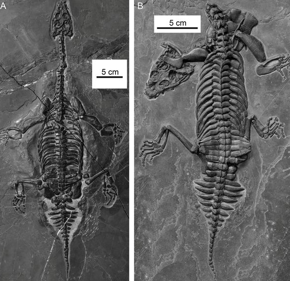 "Наш анализ двух хорошо сохранившихся скелетов показывает рептилию с широким телом и очень коротким приплюснутым хвостом", - рассказал ведущий автор исследования д-р Цин-Хуа Шан из Китайской академии наук.