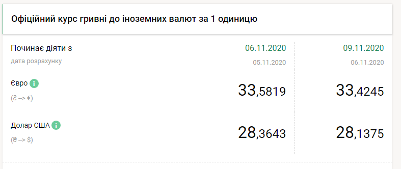 Национальный банк на понедельник, 9 ноября, повысил официальный курс гривны к европейской валюте до 33,4245 грн/евро по сравнению с 33,5819 грн/евро днем ранее, передает FaceNews.ua. Об этом говорится в сообщении НБУ.