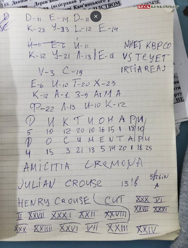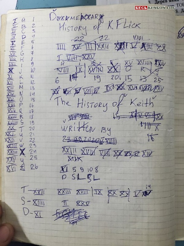Эта тетрадь была в рюкзаке, когда его задержали. Так, на опубликованных фото видно, что в тетради есть несколько слов на английском языке и много арабских и римских цифр, а также кириллические и латинские буквы.