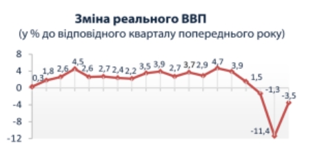 Согласно первым данным, экономика Украины сократилась на 3,5% по сравнению с аналогичным периодом прошлого года.