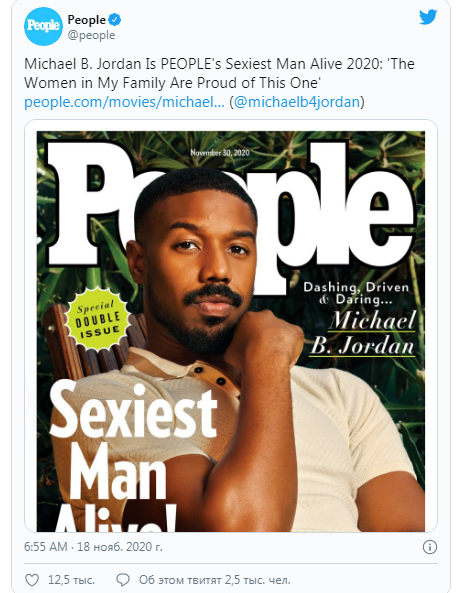 Издание отметило не только внешние данные 33-летней звезды Черной пантеры, но и его общественную деятельность.