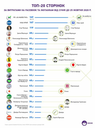 - страница "Политическая партия "За Будущее" возглавляет ТОП по расходам. С августа по октябрь она потратила почти 170 тыс. долларов;