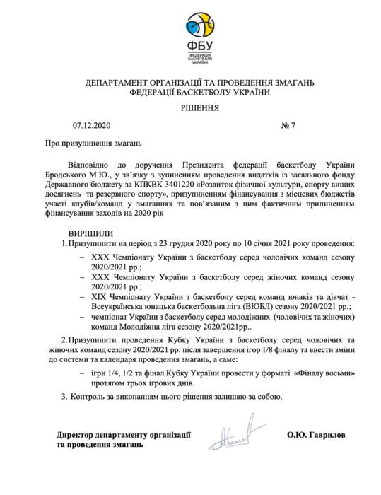 Как сообщает официальный сайт ФБУ, в связи с отсутствием финансирования баскетбольных мероприятий со стороны государства, департамент организации и проведений соревнований ФБУ принял решение приостановить проведение всех чемпионатов по 23 декабря 2020 по 10 января 2021 года.