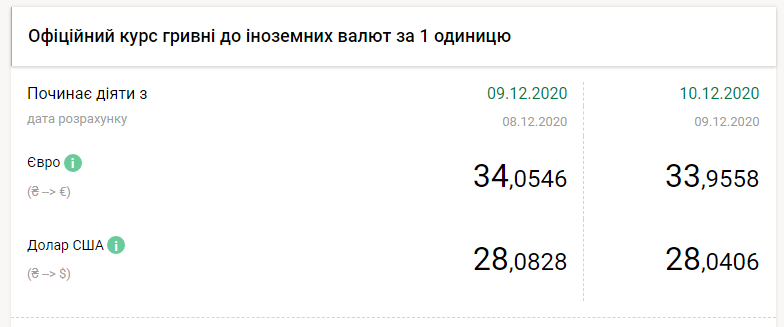 Национальный банк Украины на четверг, 10 декабря, укрепил курс гривны на четыре копейки по отношению к доллару и на девять копеек по отношению к евро, передает FaceNews.ua. Об этом свидетельствуют данные на сайте НБУ в среду, 9 декабря.