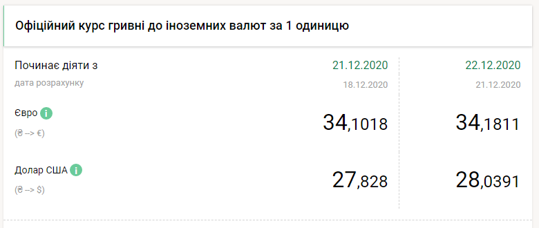 Национальный банк Украины на вторник, 22 декабря, понизил курс гривны на 21 копейку по отношению к доллару и на 7 копеек к евро, передает FaceNews.ua.Об этом свидетельствуют данные на сайте НБУ.