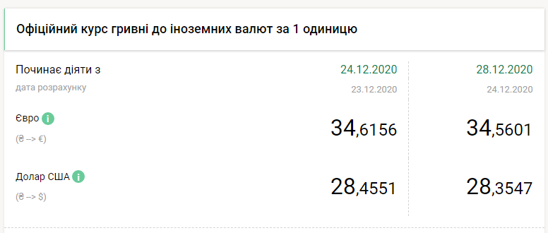 Национальный банк Украины обновил курсы валют на 28 декабря 2020 года, передает FaceNews.ua. Такие данные опубликованы на сайте регулятора.
