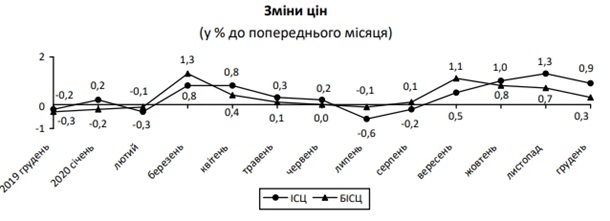 В Украине в декабре 2020 года цены на потребительские товары выросли на 0,9% по сравнению ноябрем, передает FaceNews.ua.