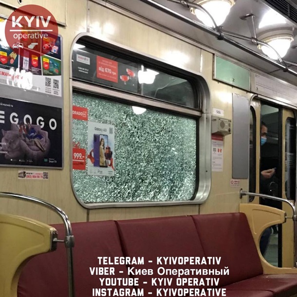 В Киеве вандалы разбили окна в поездах метро (фото)