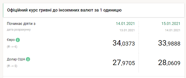 Национальный банк Украины после недели укрепления гривны на пятницу, 15 января, ослабил курс нацвалюты на 9 копеек по отношению к доллару и укрепил на 5 копеек к евро, передает FaceNews.ua. Об этом свидетельствуют данные на сайте НБУ в четверг, 14 января.