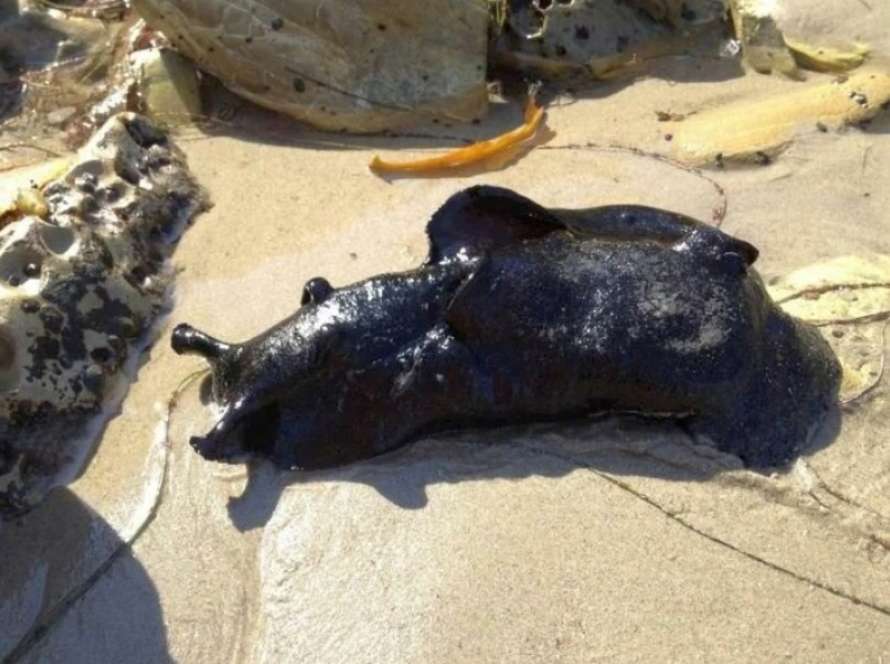 Длина одной особи может достигать метра, а вес — около 14 кг. Известен этот обитатель Тихого океана как черный или калифорнийский морской заяц. Шанс наблюдать редкого слизня имеется не у многих, поскольку у берегов они оказываются исключительно в период размножения.