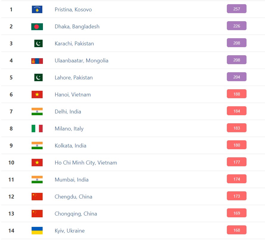 Согласно ресурсу IqAir, по состоянию на 20 января, Киев занимает 14 место в мире по уровню загрязнения воздуха. Столица Украины имеет индекс загрязнения 168 при норме 50.
