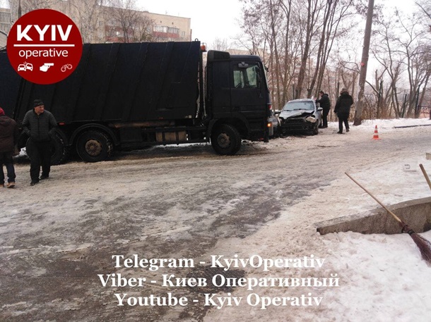 В Киеве мусоровоз разбил десять автомобилей (фото)