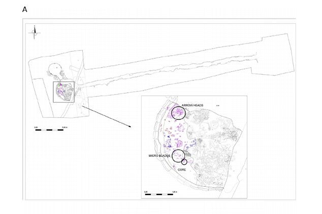 Хотя горные кристаллы были обнаружены повсюду, самые сложные предметы – наконечники стрел и лезвие кинжала – были обнаружены в южном секторе.