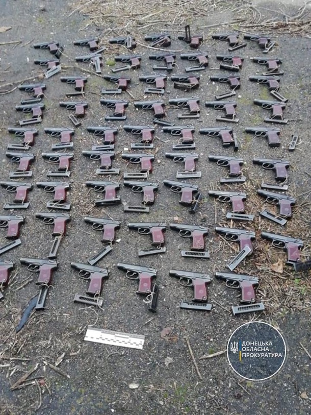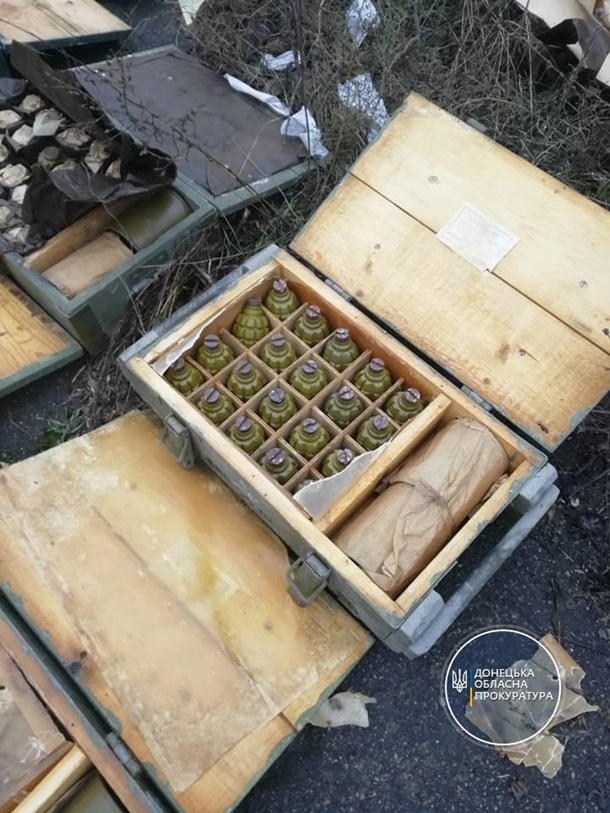 В тайнике находилось более 1600 гранат РГД-5 и Ф-1, 2 тысячи осветительных ракет, 1060 запалов УЗРГМ, 2 крупнокалиберных ствола, 61 пистолет Макарова, а также 124 ящика патронов калибра 7,62 и 14,5 мм.