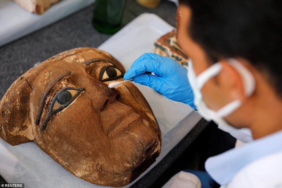 Саркофаги и статуи, захороненные более 2500 лет назад, были выставлены на импровизированной выставке у подножия знаменитой Ступенчатой пирамиды Джосера в Саккаре.