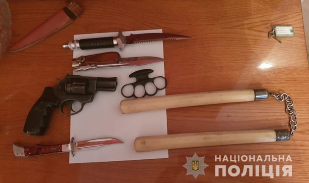 В ходе проведения обысков по местам проживания фигурантов правоохранители обнаружили и изъяли оружие, кастет, стилет, финские ножи, нунчаки, удостоверение журналиста, деньги в разной валюте на общую сумму около 184 тысяч гривен.