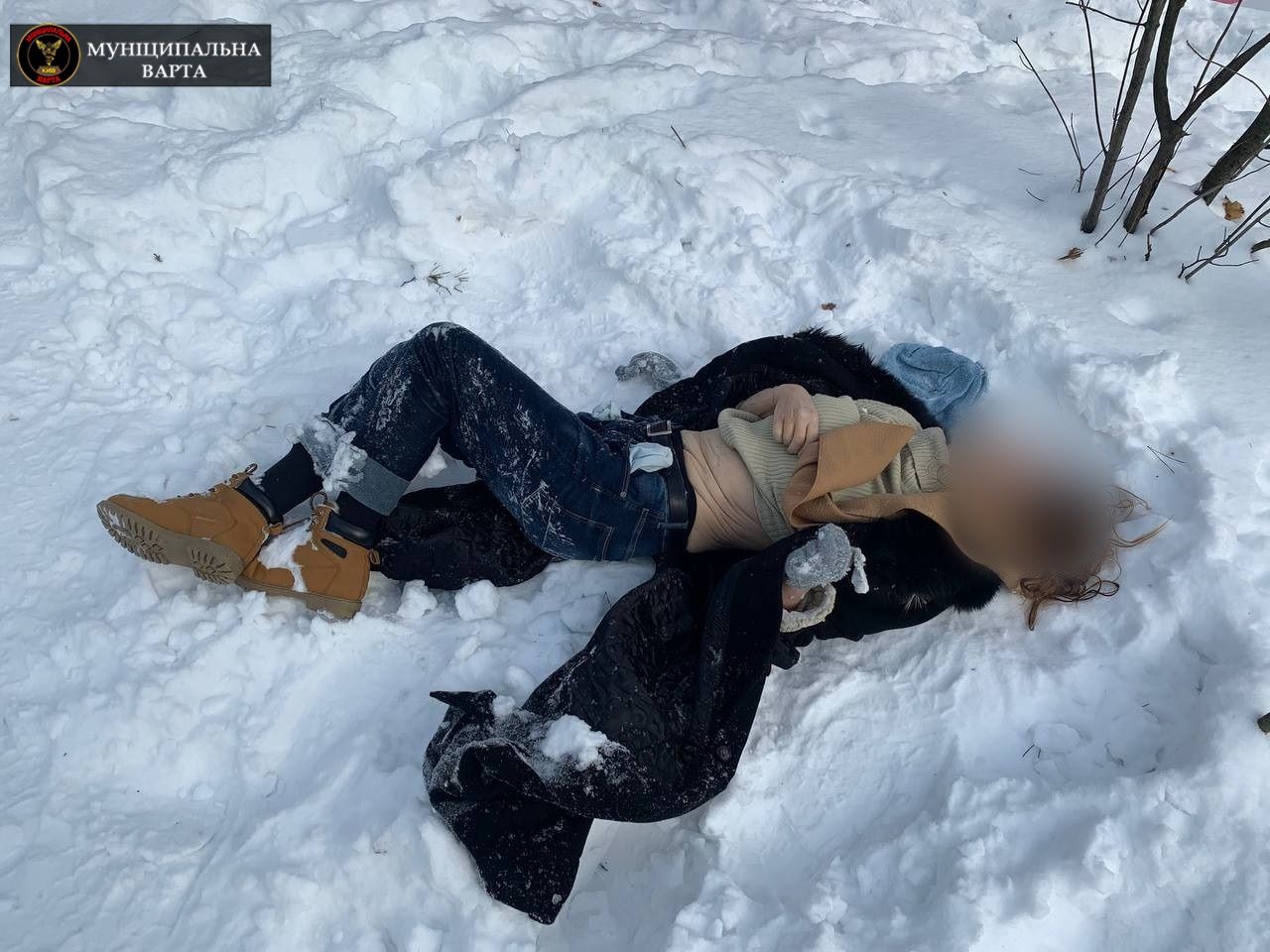 Как сообщает Муниципальная Варта Киева в Facebook, на страшную находку Муниципальная охрана натолкнулась, когда патрулировала территорию. Девушка лежала на снегу без признаков жизни.