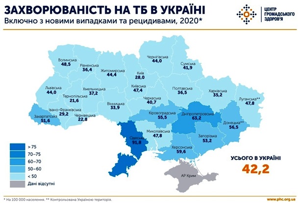 В 2020 году уменьшилась на 35% заболеваемость туберкулезом в сочетании с ВИЧ/СПИДом. Было зафиксировано 2 860 случаев по сравнению с 4 398 случаями годом ранее.