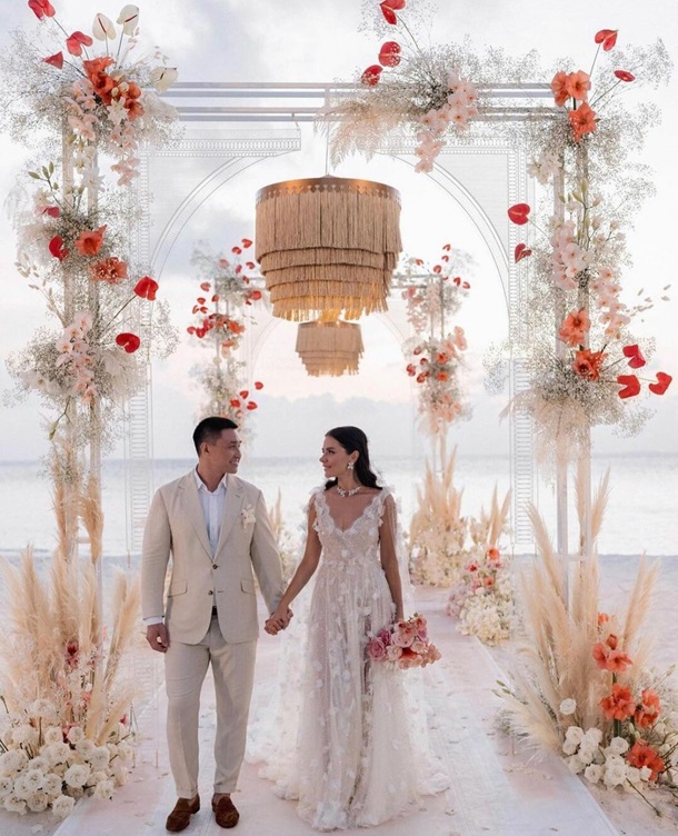 Официальная часть торжества проходила на пляже, украшенном множеством цветов.