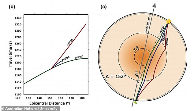 В сообщении говорится, что, используя собственный алгорит исследований, ученые заметили изменения в структуре железа во внутреннем ядре, которые предполагают новую "черту", простирающуюся примерно на 650 км от центра Земли.