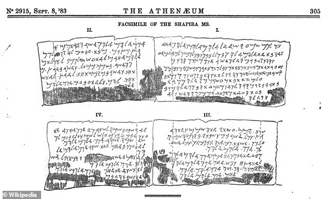 Шапира продал Британскому музею 15 кожаных полос рукописей, которые были найдены в Вади Муджиб недалеко от Мертвого моря.
