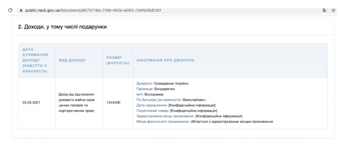 Об этом свидетельствуют данные Единого государственного реестра деклараций лиц, уполномоченных на исполнение функций государства или местного самоуправления.