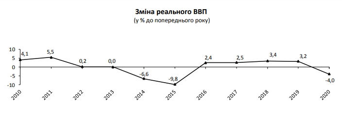 Государственная служба статистики обнародовала оценку валового внутреннего продукта (ВВП) Украины в 2020 году, передает FaceNews.ua. Экономика сократилась на 4,0%, что несколько лучше правительственного прогноза (4,8%).