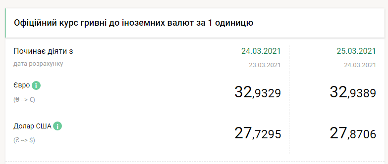В четверг, 25 марта, доллар подорожает, а евро останется стабильным, передает FaceNews.ua. Официальные курсы валют обнародовал Национальный банк Украины.