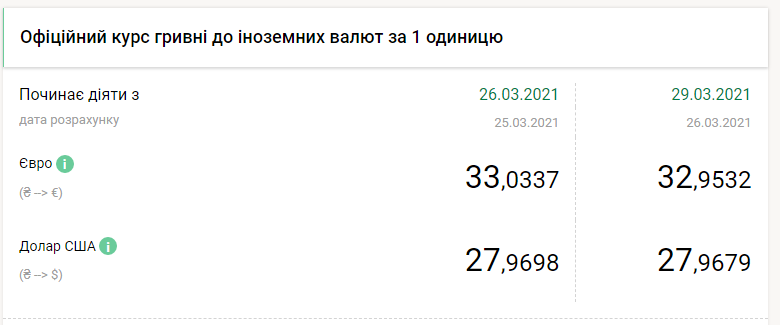 Нацбанк установил официальные курсы валют на следующем уровне:
