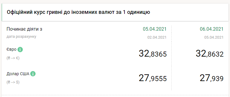 Национальный банк Украины на вторник, 6 апреля, на копейку укрепил гривну по отношению к доллару и на две копейки ослабил по отношению к евро, передает FaceNews.ua. Об этом свидетельствуют данные на сайте НБУ.