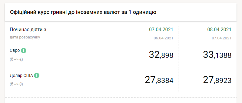 Национальный банк Украины на четверг, 8 апреля, понизил курс гривны более чем на 5 копеек по отношению к доллару и на 24 копейки к евро, передает FaceNews.ua. Об этом свидетельствуют данные на сайте НБУ.