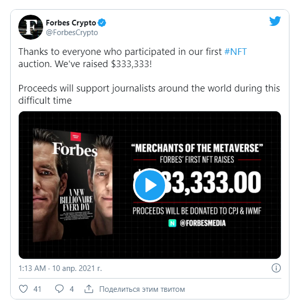 Forbes продал обложку за $333 тыс. в виде NFT-токена