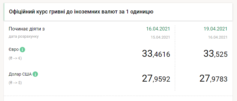 Национальный банк Украины на понедельник, 19 апреля, ослабил курс гривны на копейку по отношению к доллару, и на шесть копеек по отношению к евро, передает FaceNews.ua. Об этом свидетельствуют данные на сайте НБУ.
