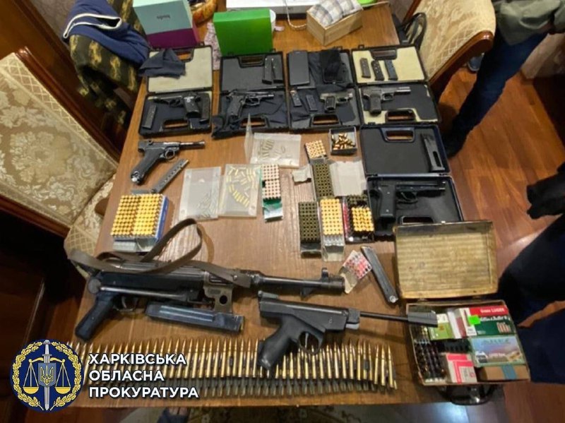 В квартире киевлянина в ходе обысков были выявлены четыре боевых пистолета, 334 боевых патрона, полимерную емкость с веществом, похожим на порох, нож-саблю, штык-нож, два деревянных ложе от винтовки Мосина, два затвора, составные части пулеметами ДП-27, магазин-диск от пулемета, пистолет, револьвер, ствол винтовки, пять патронов 7,65 калибра.