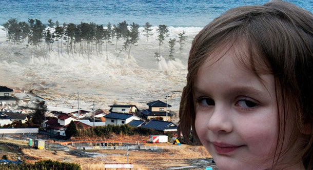 Кадр мгновенно стал вирусным в Сети и превратился в мем. Пользователи делали собственные коллажи и изображали девочку на фоне масштабных природных катаклизмов.