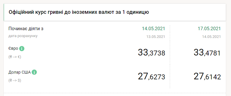 Национальный банк Украины на понедельник, 17 мая, опустил на копейку курс доллара по отношению к гривне и на 10 копеек поднял курс евро, передает FaceNews.ua. Об этом свидетельствуют данные на сайте НБУ.