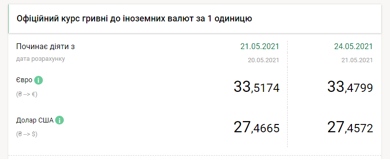 Курсы валют на 24 мая: гривна минимально укрепилась